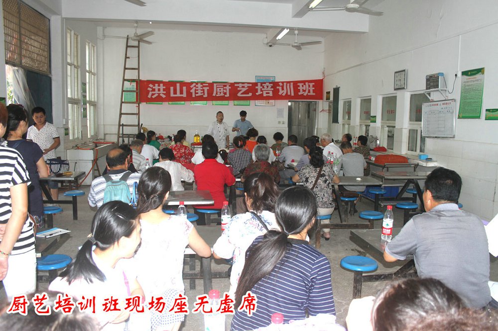 7月31日上午,送厨艺技能到社区活动在洪山街正式开始。武汉市文昌高级职业学校委派厨师精英班薛文强老师为参加培训的50多名学员,讲解了家常菜的搭配技巧、制作要点,现场演示了“毛式红烧肉”、“香煎大白刁”、“鱼香肉丝”等八道家常菜。并耐心解答学员提出的各种问题。